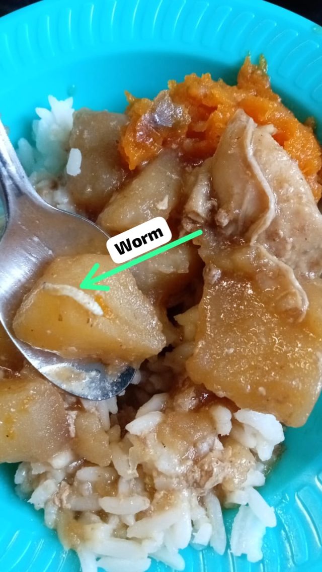 The teacher said they took a photo to show the matron that worms were found following the inspector’s visit, and the picture that she took was not clear. She then put the worm on the potato inside the plate and took a clear picture to show the Matron and her colleagues where present when she took the photo, and they allegedly took photos also.